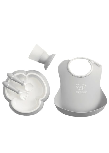 My baby (and I) love this set. It’s beautiful and stylish. I have the powder green color. The utensils are the right size for small hands. The plate fits perfectly on the BabyBjorn high chair tray. I love that the bib is adjustable and really soft & comfy
